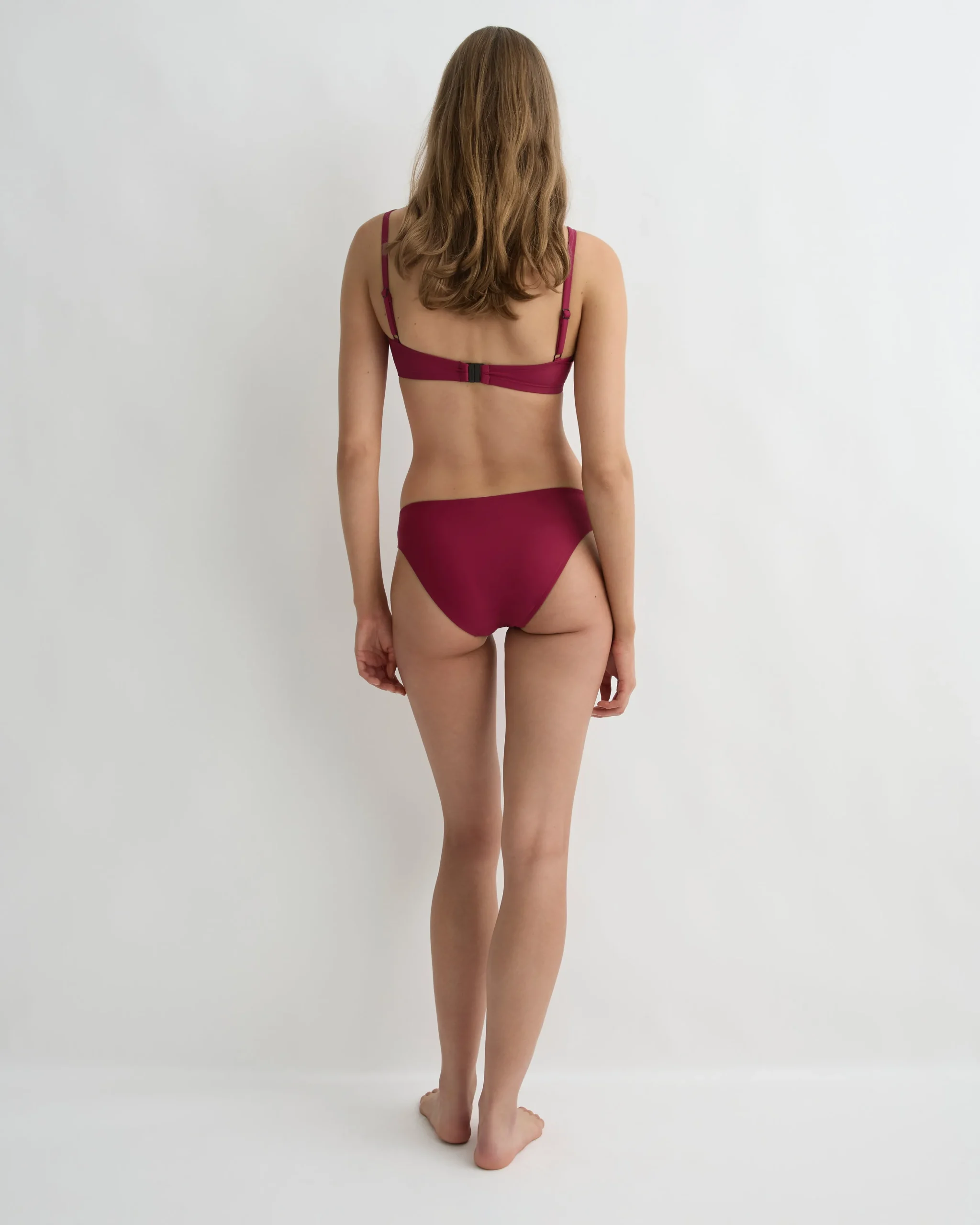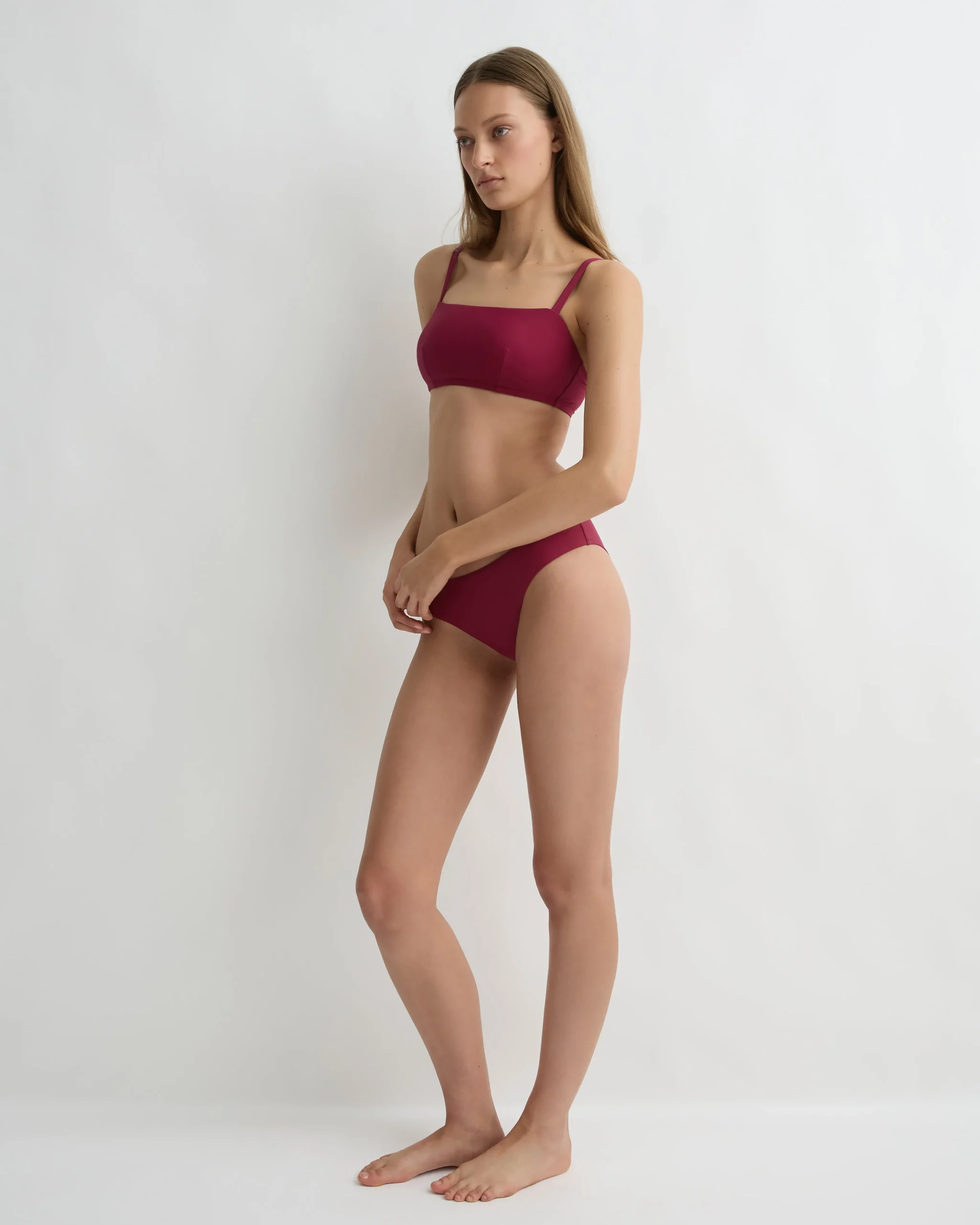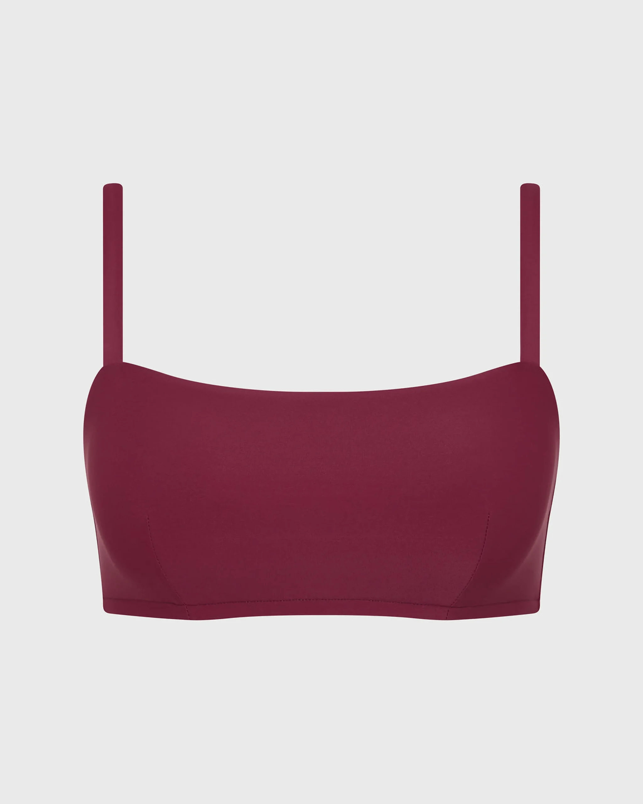 Anja in mulberry is a classic, minimal square neck bikini top that will never go out of style. Anja features invisible under-bust support, removable cups, adjustable shoulder straps and a branded back clip. Anja is is self-lined with a lighter, luxuriously soft version of Sculpteur® for weightless comfort, making it as enduring as it is flattering. Anja is best suited for bust sizes C, D, DD, E.