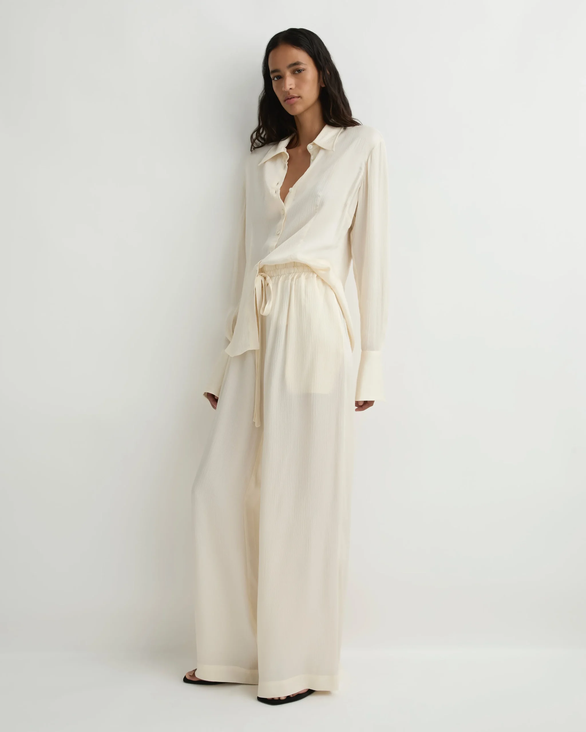 An elevated wardrobe essential, the Ardea Fitted Blouse is crafted from a fluid viscose blend with a lustrous European hammered satin finish. Its darted body, elongated cuffs, and Japanese-sourced button closure create a refined, tailored silhouette that drapes effortlessly with the body. Cut for a neat, true-to-size fit at the waist, this blouse offers timeless sophistication for both event dressing and elevated evenings. Style it tucked into our high-waisted Ardea Luxe Pant for modern polish, or pair it back with our Ardea Draped Skirt for understated glamour.