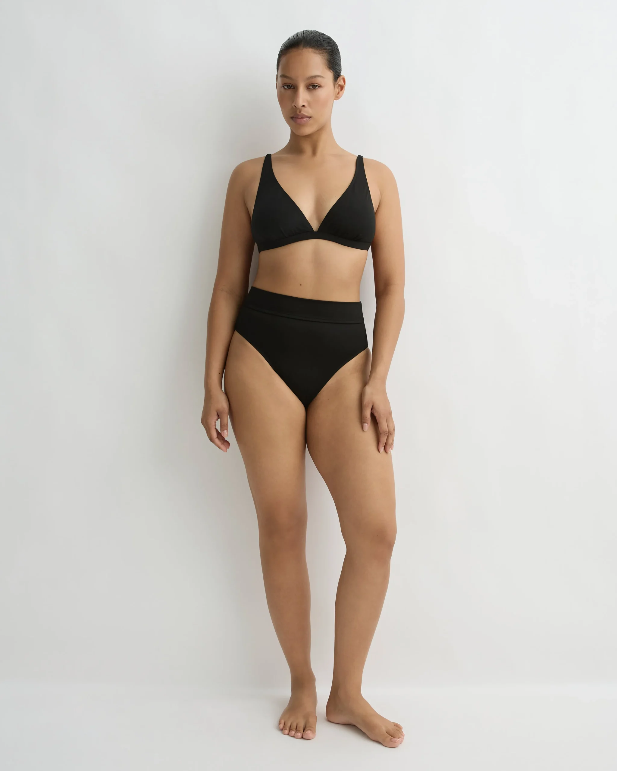 Aurelie in Black is a timeless classic bikini top, featuring a V plunge neckline, adjustable shoestring straps and a narrow band under the bust-line for support. Made using our luxury Singuleur® fabric that hugs the body like a second skin, Aurelie will be a core part of your swim wardrobe for years to come.