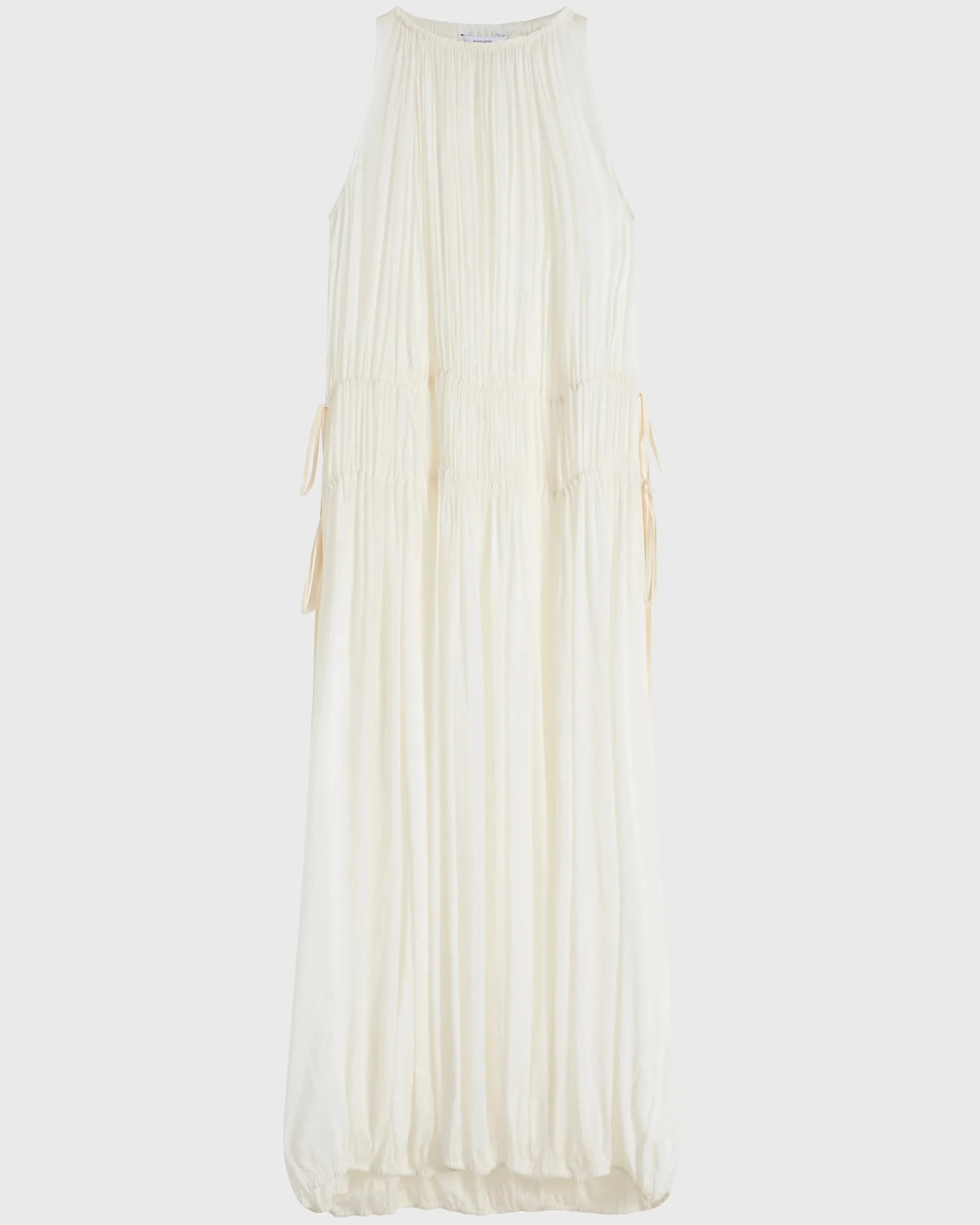 Light as air, the limited-edition Cremona Balloon Dress in white is cut from sheer European rayon–viscose voile that floats softly over the body. The elastic neckline and hem create a modern, voluminous shape, while adjustable waist ties allow personalised definition. Finished with an internal slip, it delivers ethereal elegance for warm-weather occasions.