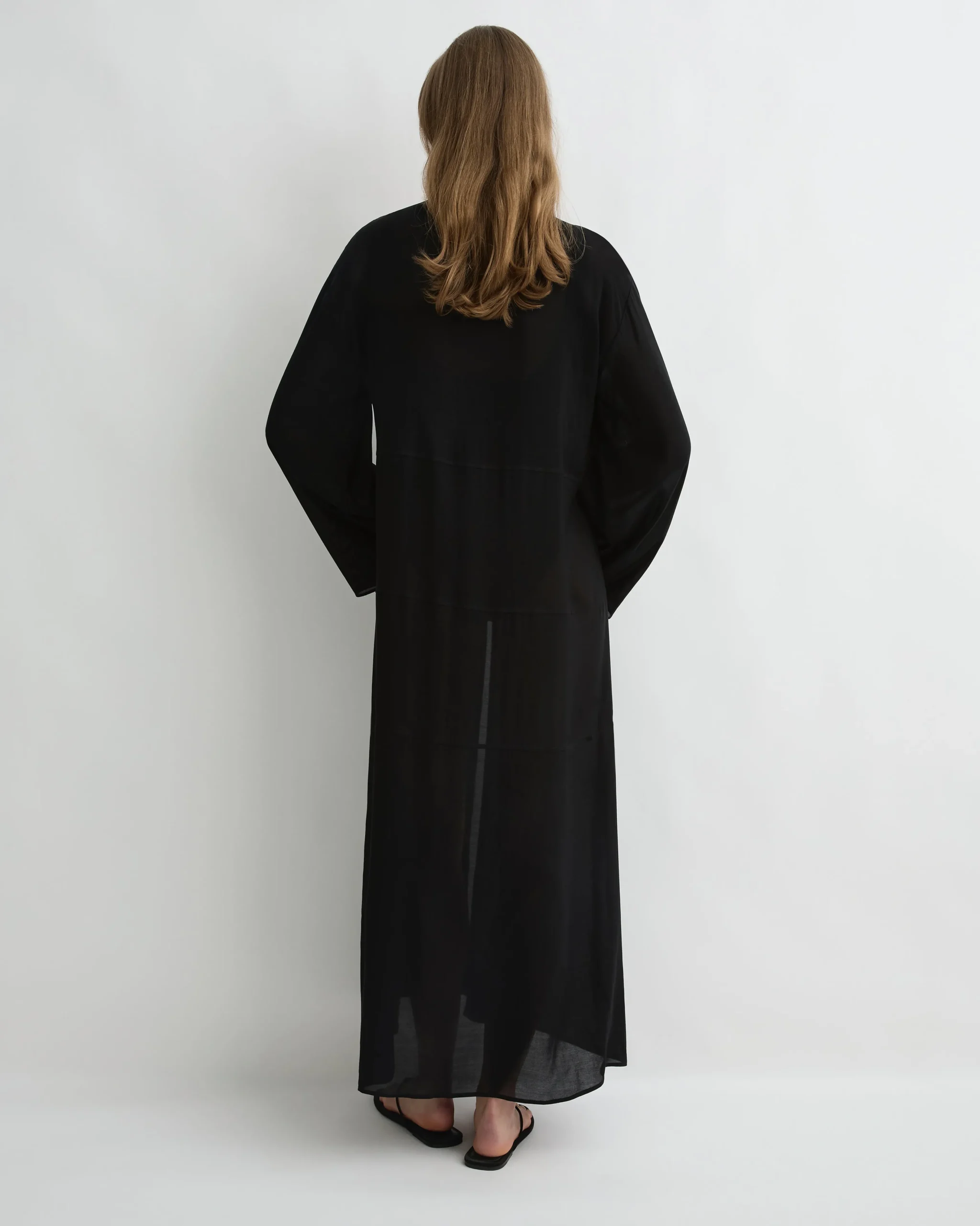 The Cremona Tie-Front Maxi Coverup in Black is a flowing, lightweight layer crafted from soft European rayon voile. Defined by its gently flared silhouette, panelled seams and relaxed long sleeves, this maxi-length design fastens with an elegant tie-front closure. Cut for a relaxed fit with flexible sizing, it slips easily over swimwear for effortless resort styling. Perfect layered over swim or our Como slips to offer added coverage beneath the sheer fabric.