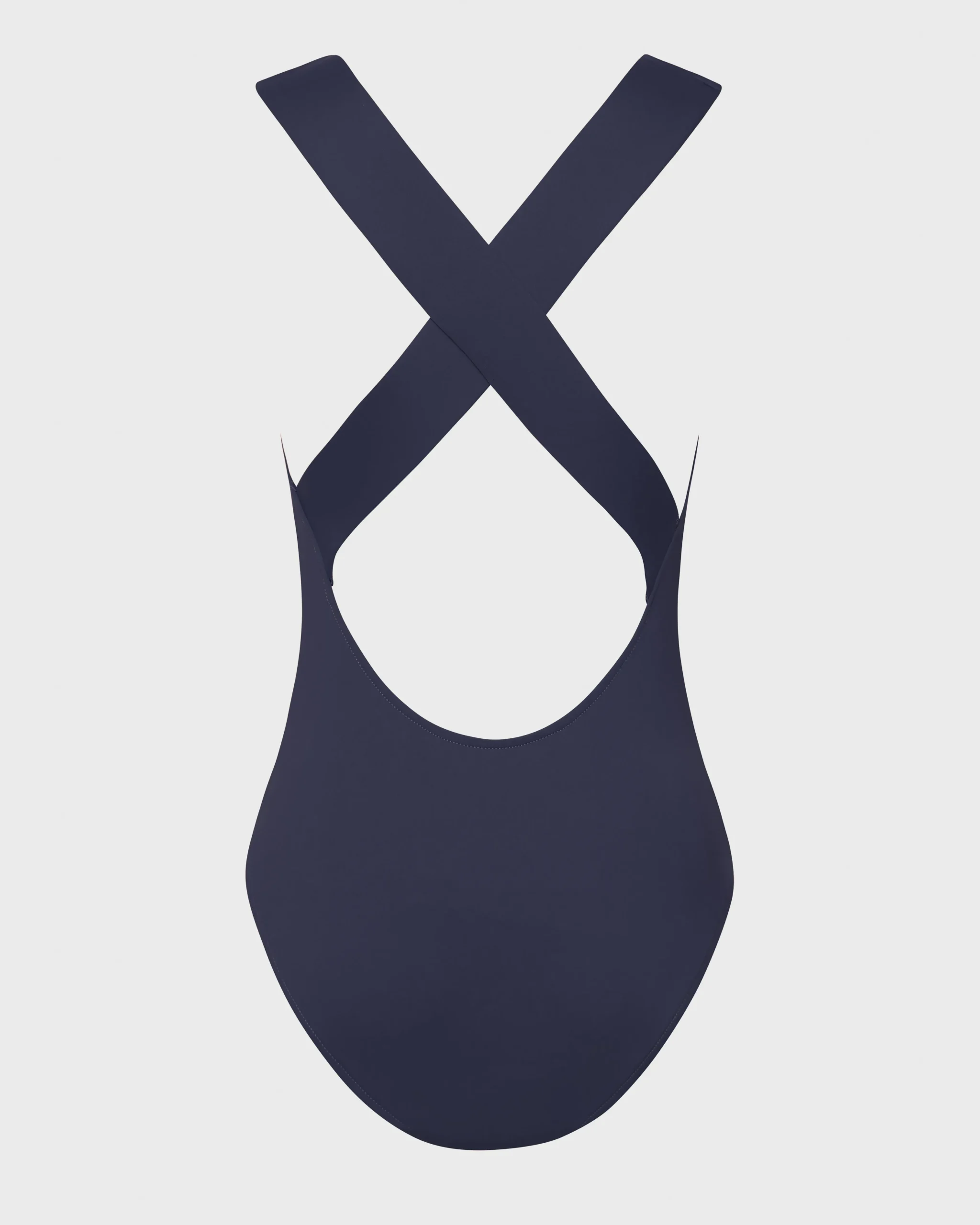 The Fernanda One Piece in Maritime has a distinctly sporty feel. The square neck line extends into two wide, elasticated straps that make a dramatic cross over above a low, scoop back. The comfortable, crossed straps make Fernanda perfect for higher levels of movement and activity in your swimwear. Fernanda is self lined in our luxury Embodee™ fabric, which is ultra soft, yet has strong shaping power that flatters the silhouette.