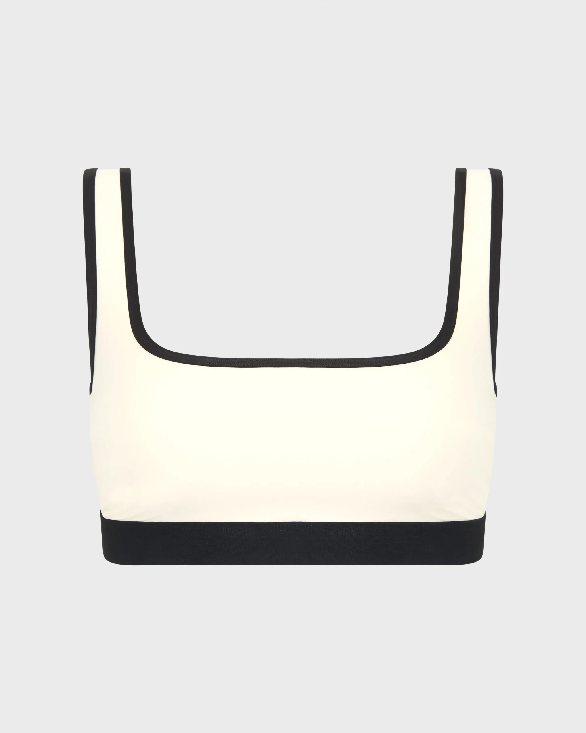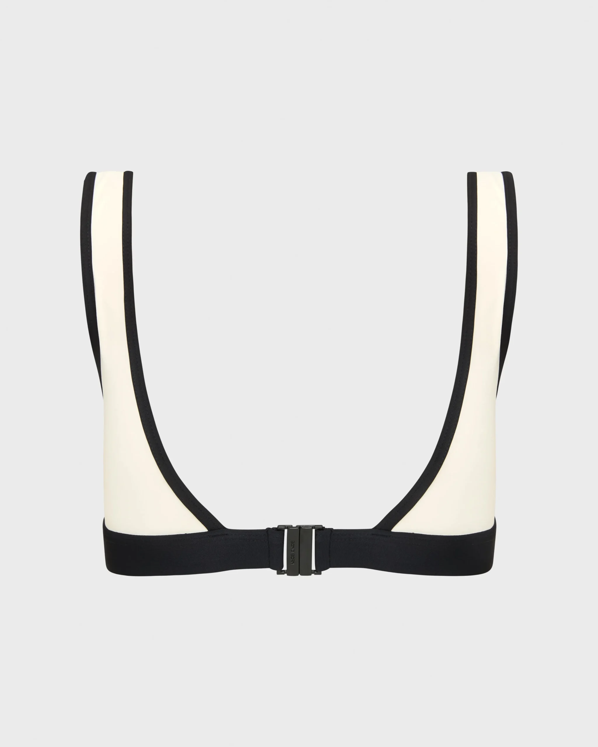 The Hayden in Pearl is a chic square neck bikini top that features contrasting black bind. Hayden is made using our technically advanced Sculpteur® fabric that supports the bust. This piece is ideal for larger busts from B to E cup and features invisible under-bust support. Wear Hayden with any of our Sculpteur® bikini bottoms in Pearl or Balck or the matching Jayde Bikini Bottom.