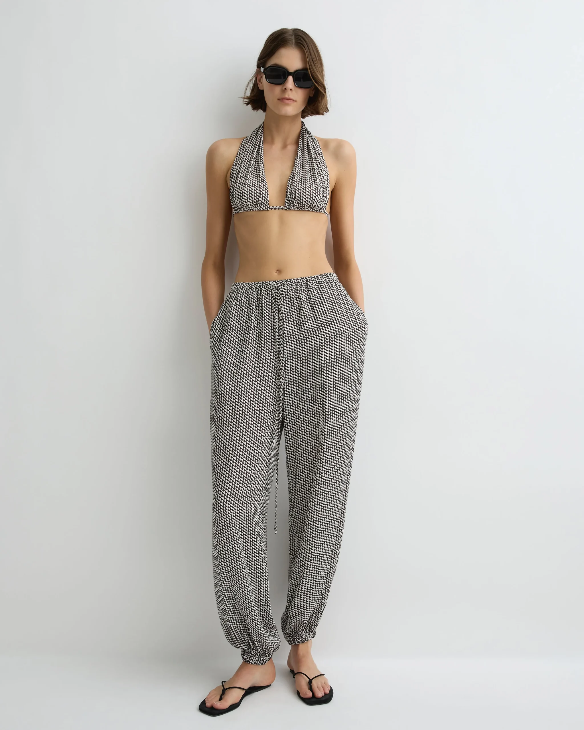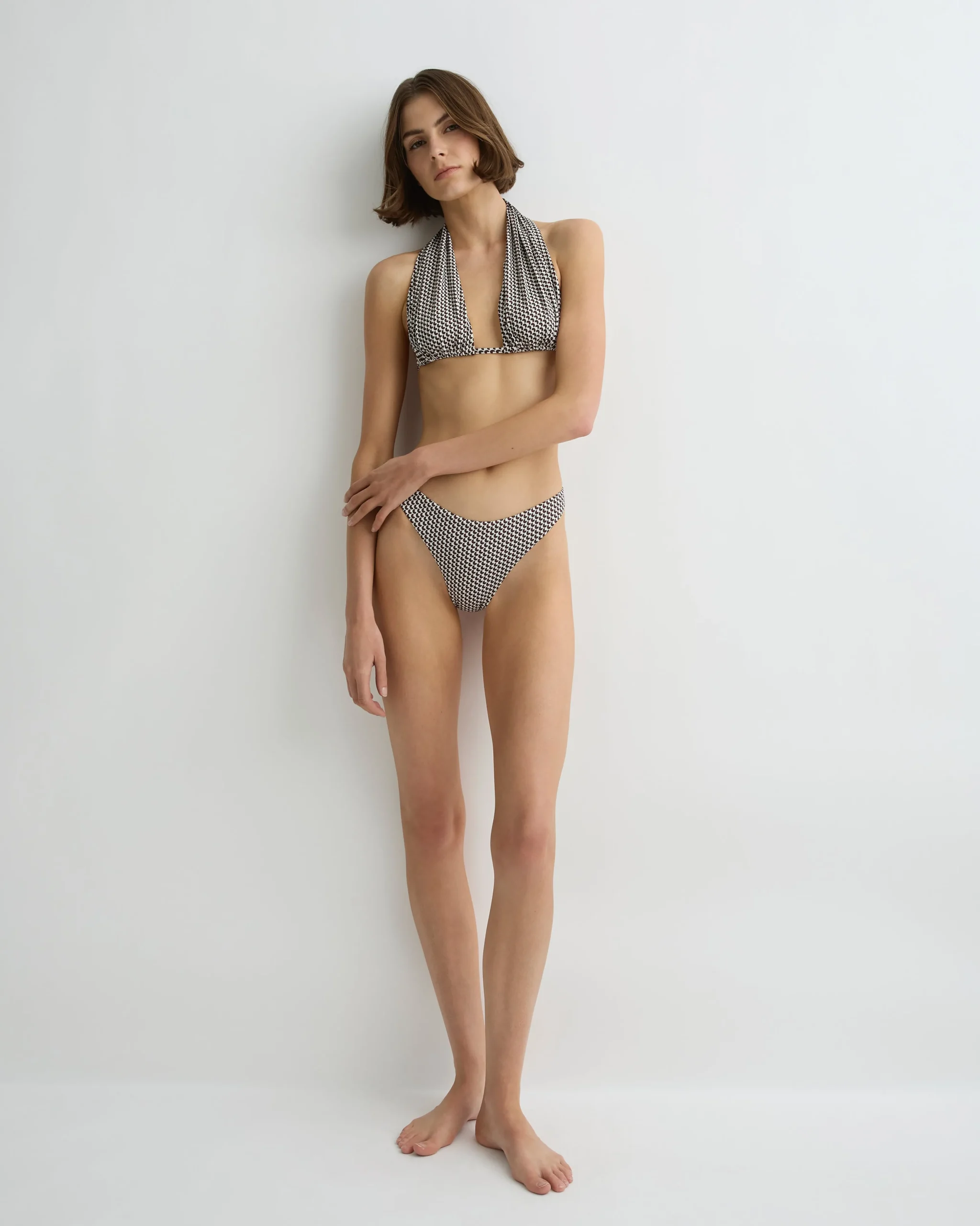 The Isabella Bikini Top in limited-edition Mocha Dot is defined by a wide, adjustable halter neckline with an elegant single gather. Featuring adjustable cup coverage and an underbust tie closure, this piece offers a considered balance of comfort, support, and elegance.