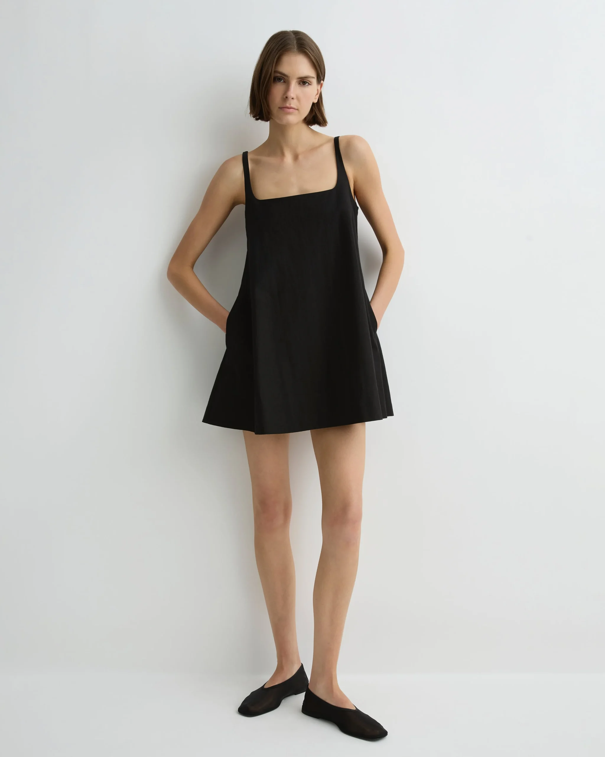 Lightweight Japanese Dry Cotton gives the limited-edition Kyoto Mini Dress its crisp, elevated feel. Featuring a square neckline, narrow straps, flared hem and side pockets, this mini silhouette blends playful proportions with minimal sophistication.
