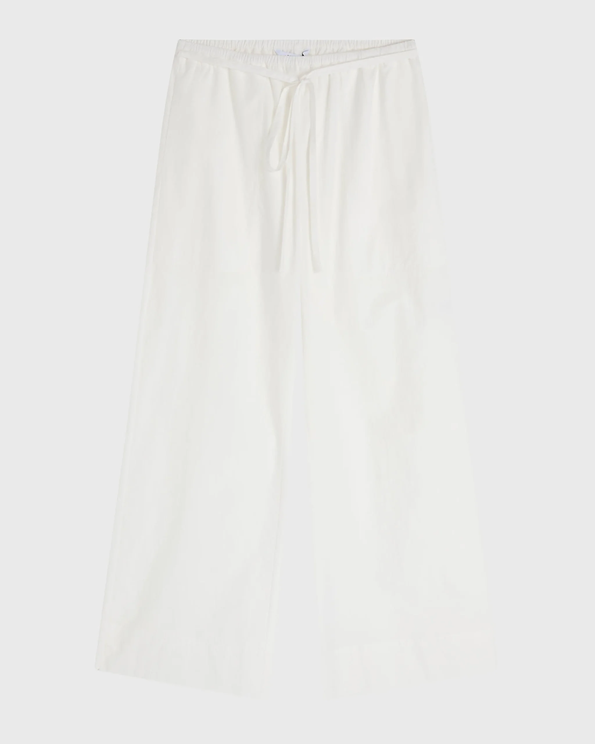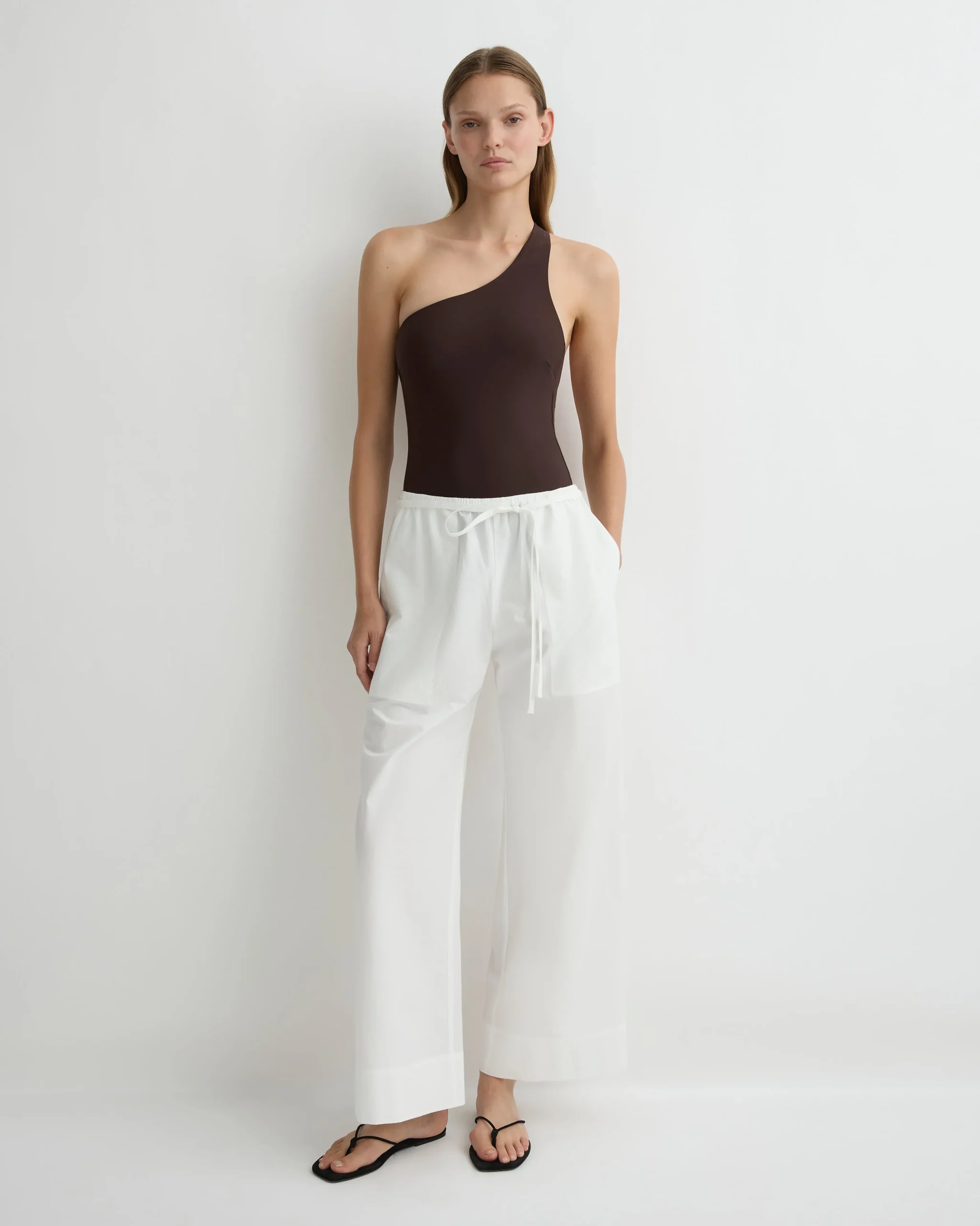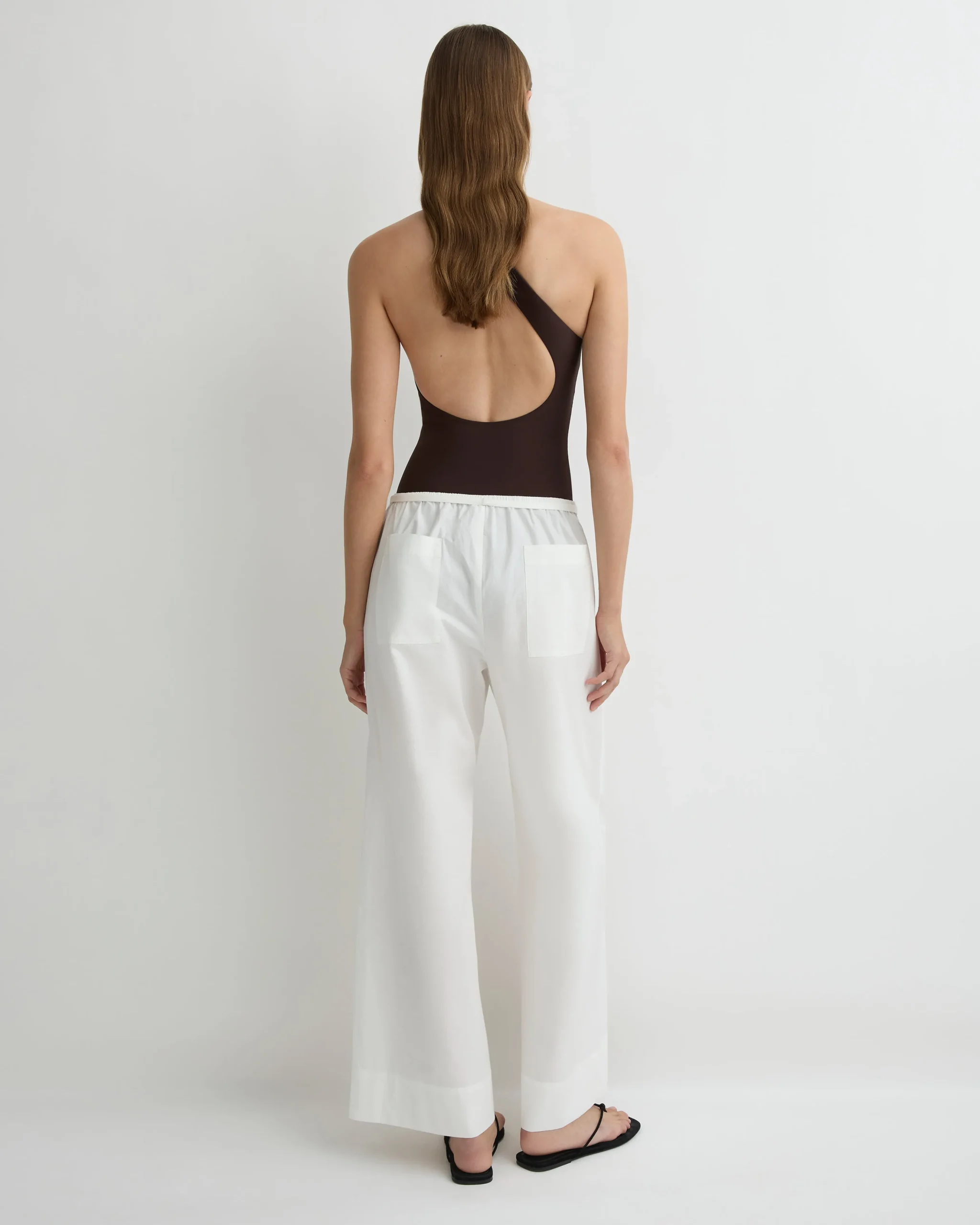 The Kyoto Pant in White is a versatile summer staple, crafted from crisp Japanese dry cotton poplin. Cut with a straight leg, this full-length silhouette features an elasticated waistband with a self-tie detail, and practical side and back pockets. Relaxed yet refined, it pairs effortlessly with our matching Kyoto Cami or Kyoto Short Sleeve Shirt for a chic summer set.