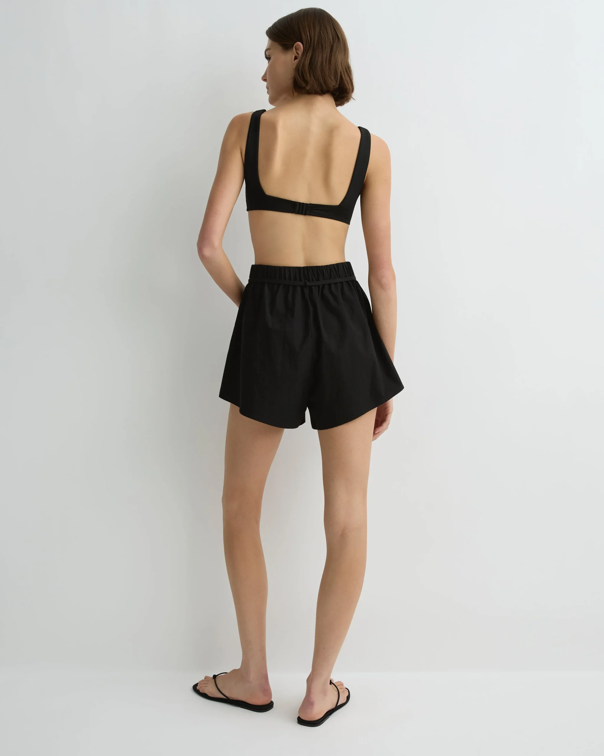 The limited-edition Kyoto Short in black offers elevated everyday ease in Japanese Dry Cotton. With a mini-length silhouette, elastic waist and removable tie belt, it blends structured texture with relaxed comfort for refined summer dressing.