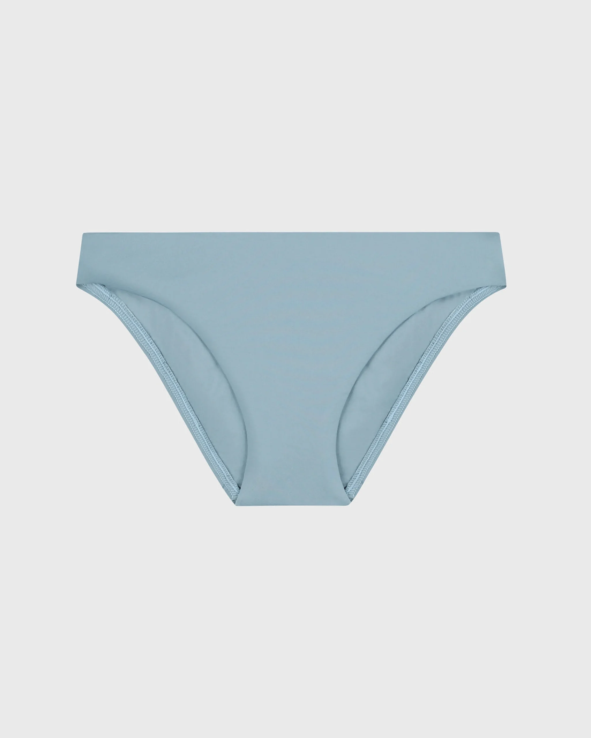 The Leya bikini bottom in Smoke features a high cut leg line and moderate bottom coverage. Self-lined in our luxurious, ultra-soft, Italian Embodee™ fabric Leya will be one of the most comfortable bikini bottoms you own and will last up to 10 times longer than standard swim fabrics.