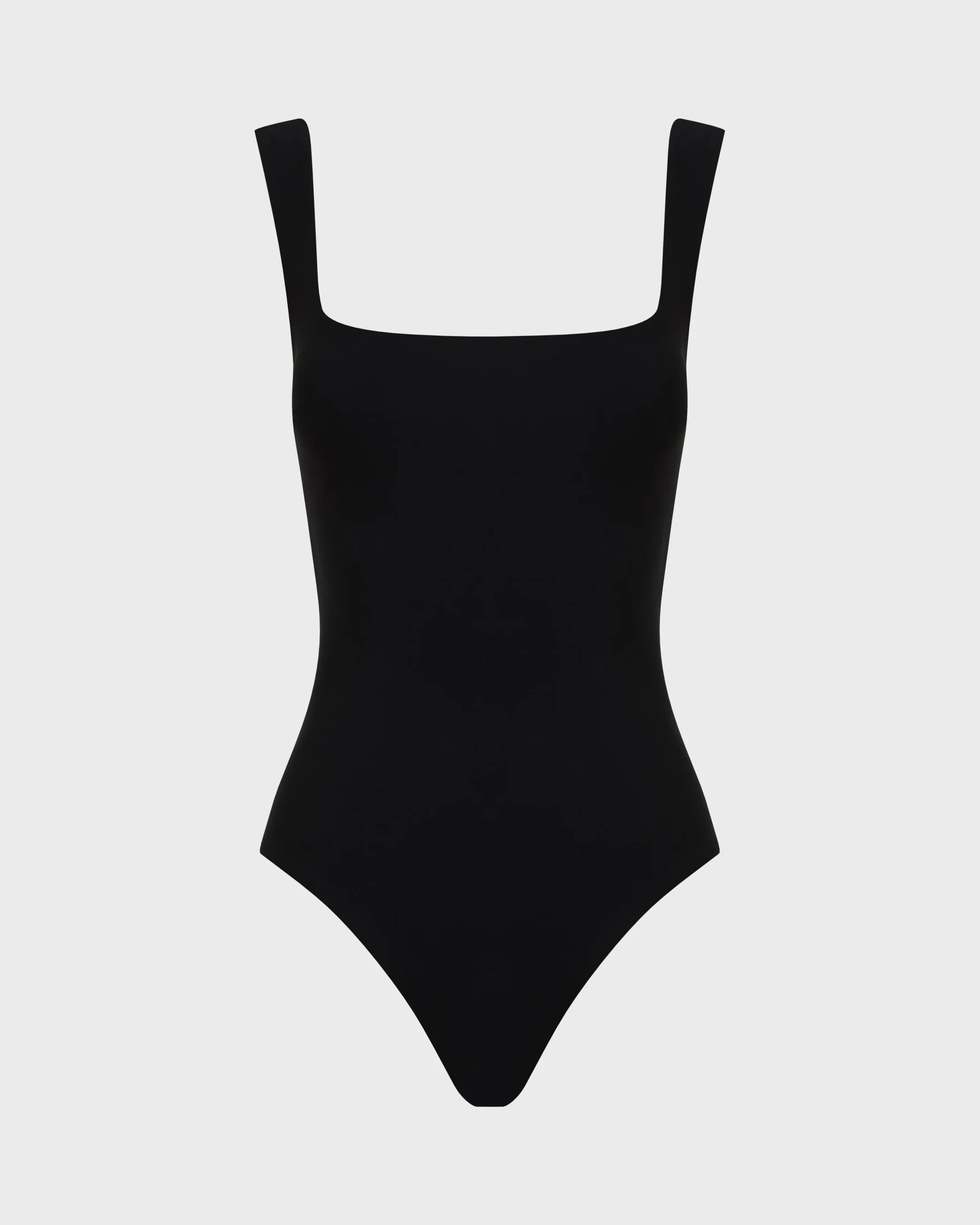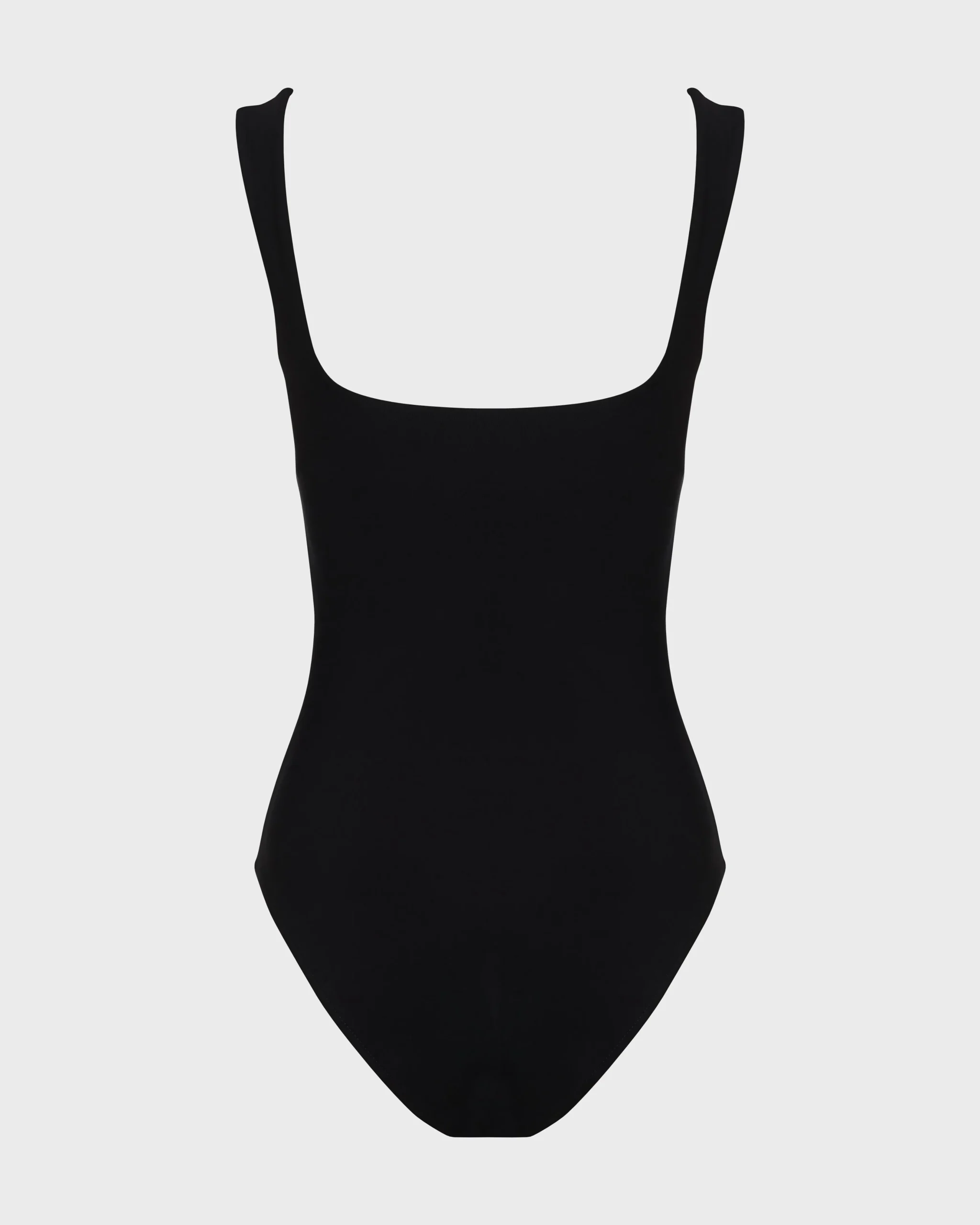 Our best selling the Mackinley One Piece in classic Black blends timeless elegance with a flattering, minimalist silhouette. Made from our luxury Italian Sculpteur® fabric, sustainably crafted and engineered with patented 3-D stretch technology, Mackinley supports, smooths and perfects the body. Featuring a refined square neckline, invisible under-bust support, removable bra cups, and a regular leg line, Mackinley suits most body types and bust sizes from B to DD. Self-lined with a lighter, luxuriously soft version of Sculpteur® for all-day comfort, this enduring design lasts up to 10 times longer than standard swim fabrics.