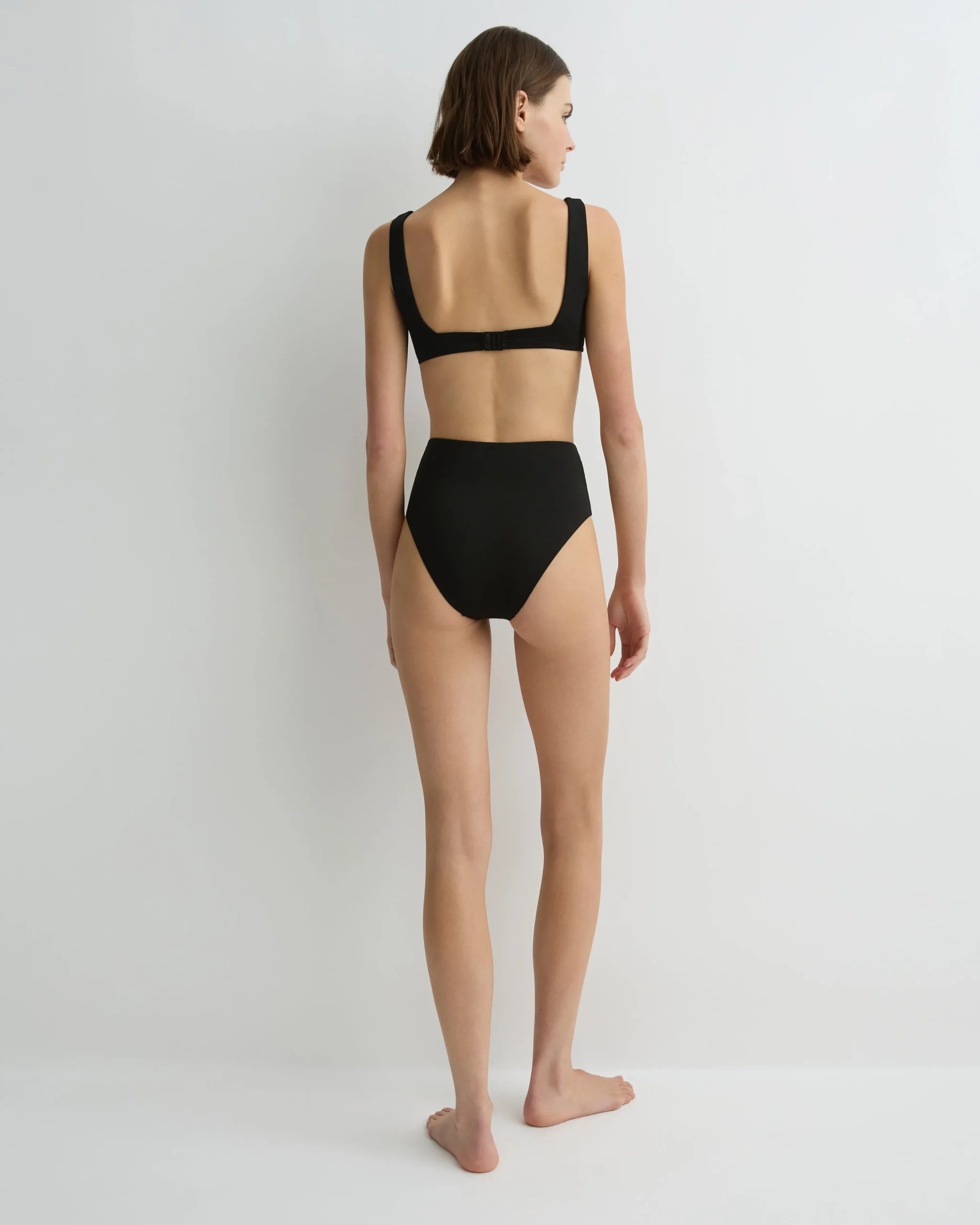 Timeless and refined, the Poppy Bikini Bottom in Black features a flattering high-waist design with a sporty high-cut leg line to elongate the legs. Cut from our luxuriously soft Italian Embodee™ fabric, which is sustainably made, Poppy is self-lined for supreme comfort and gentle shaping power that smooths and refines the silhouette.