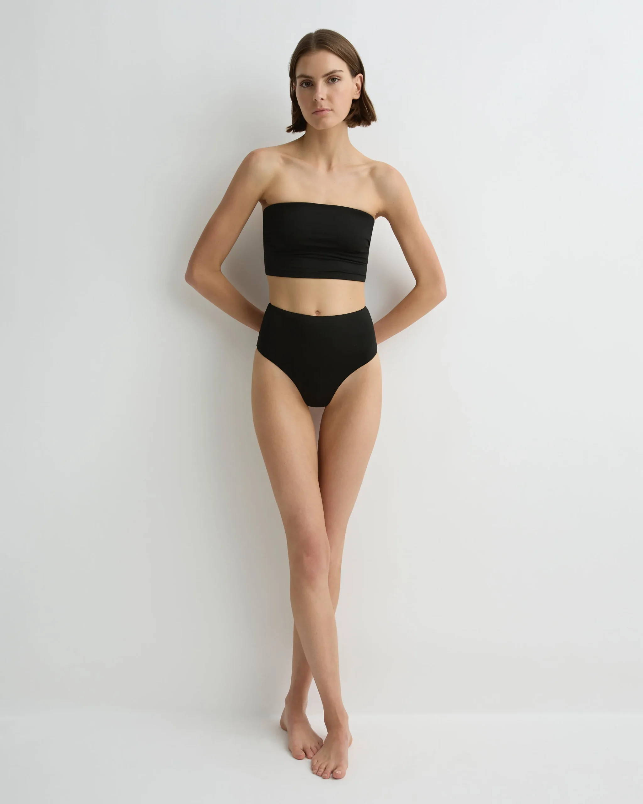 Sleek and timeless, the Stella Bikini Top in Black is a strapless bandeau with clean lines. Crafted from our luxuriously soft Italian Embodee™ fabric, which is sustainably made, Stella is self-lined for supreme comfort and gentle shaping power. With invisible under-bust support and subtle side gathering that flatters the bust, Stella suits all cup sizes A–F. Also perfect styled beyond the beach with tailored trousers or a summer skirt.