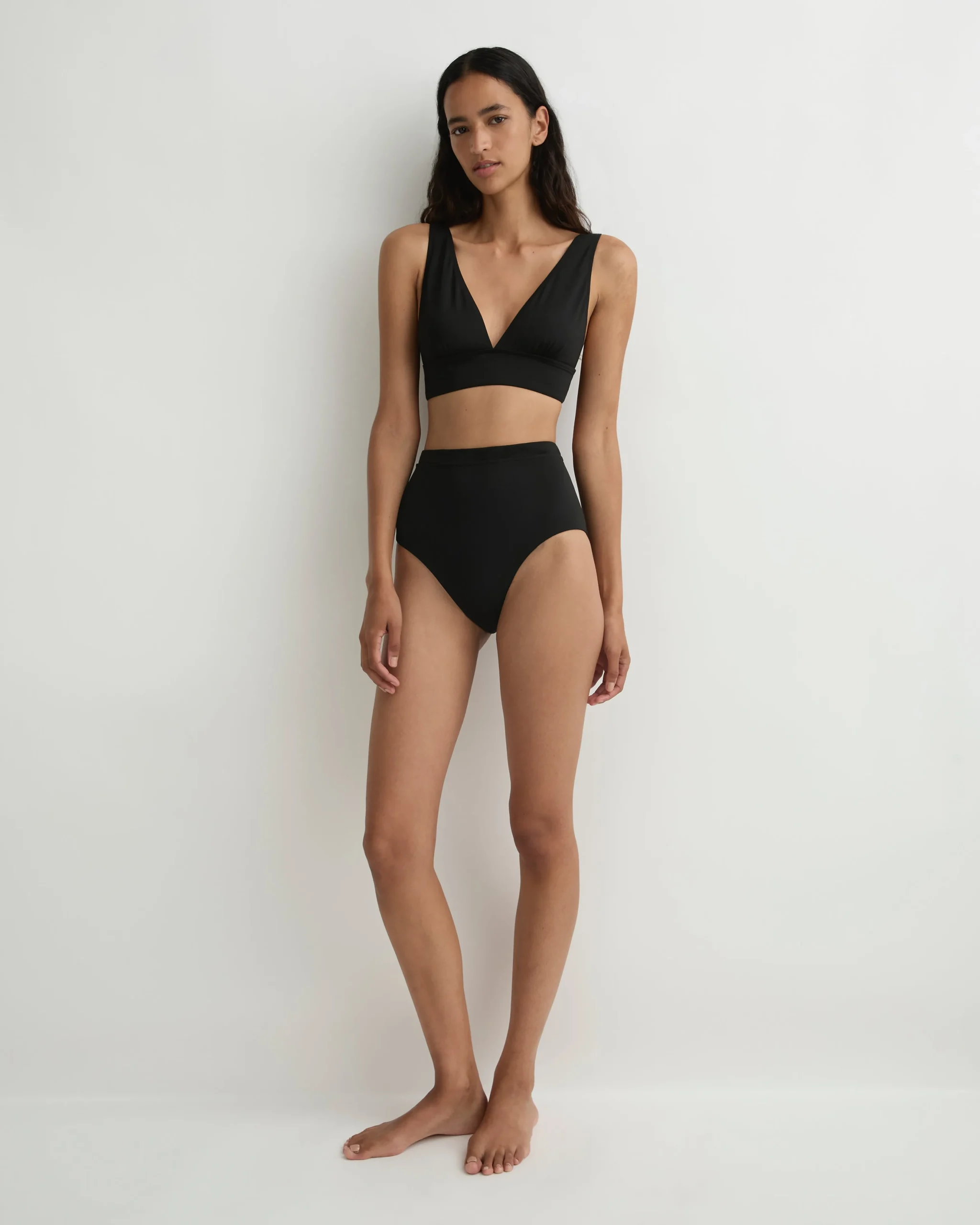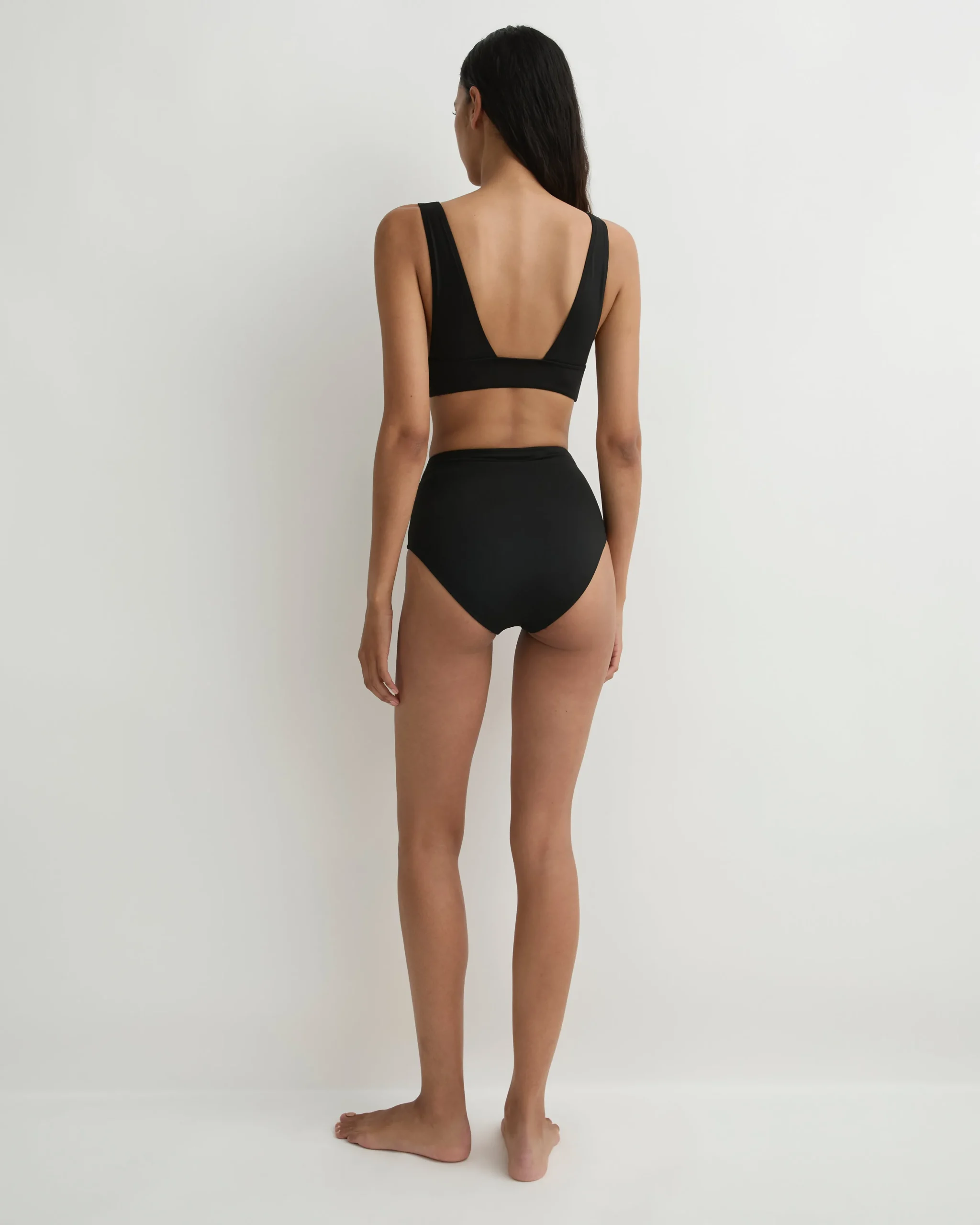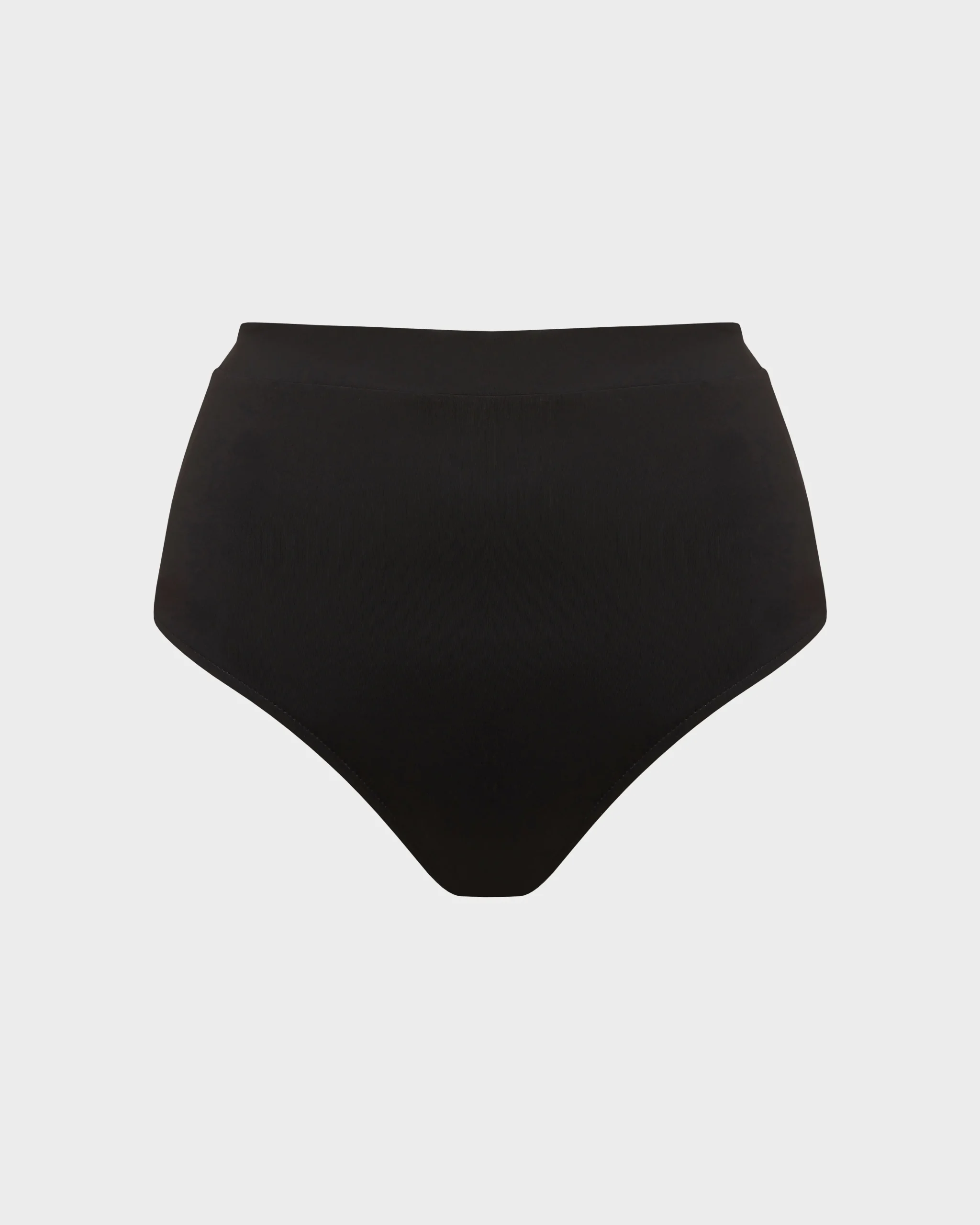 The Talia Bikini Bottom in black Singuleur® fabric is a supremely comfortable, high waisted bikini bottom, made using our unique circular knit fabric that moves with the body like a second skin. Talia provides regular bottom coverage and pairs with any of our black Singuleur® bikini tops.