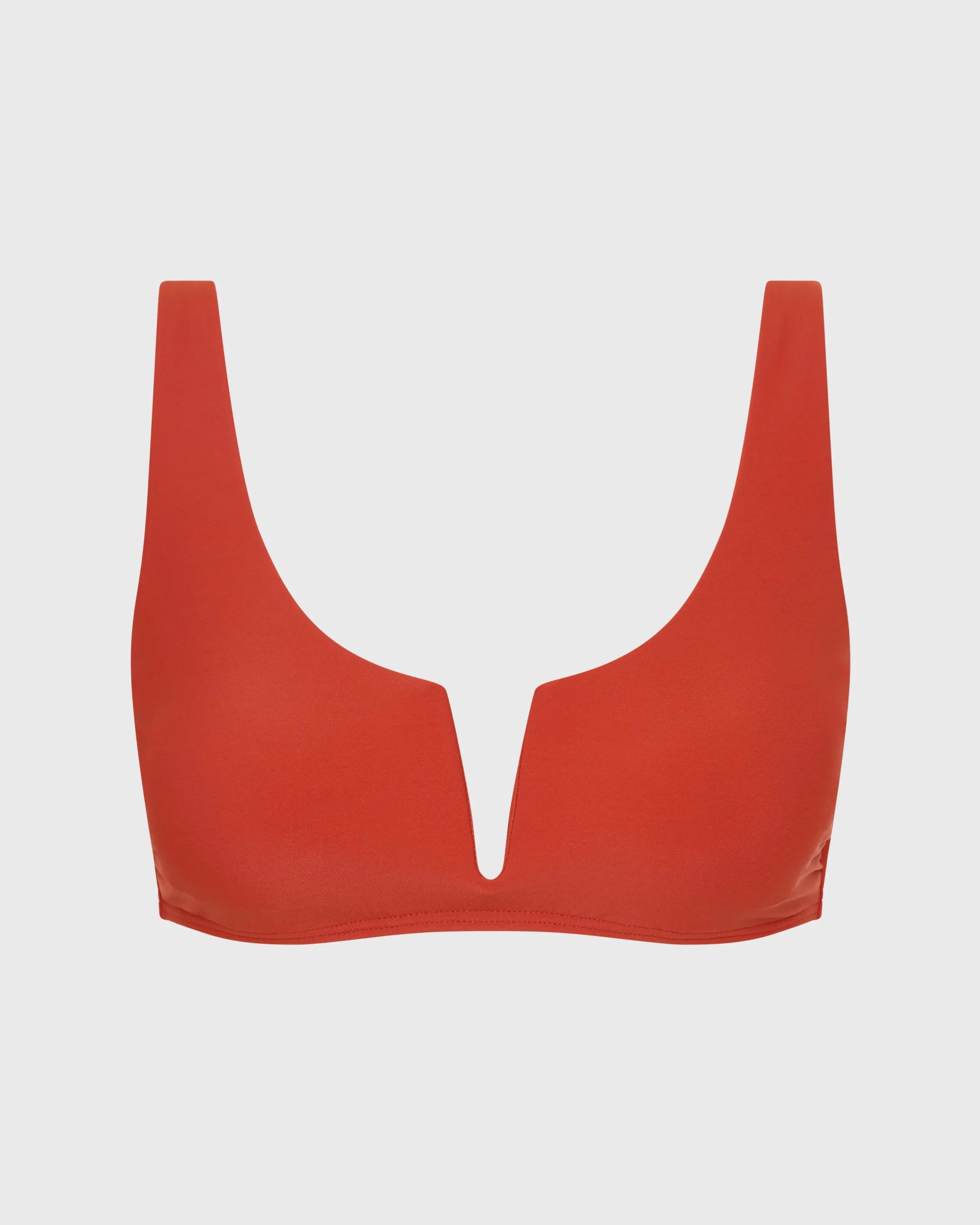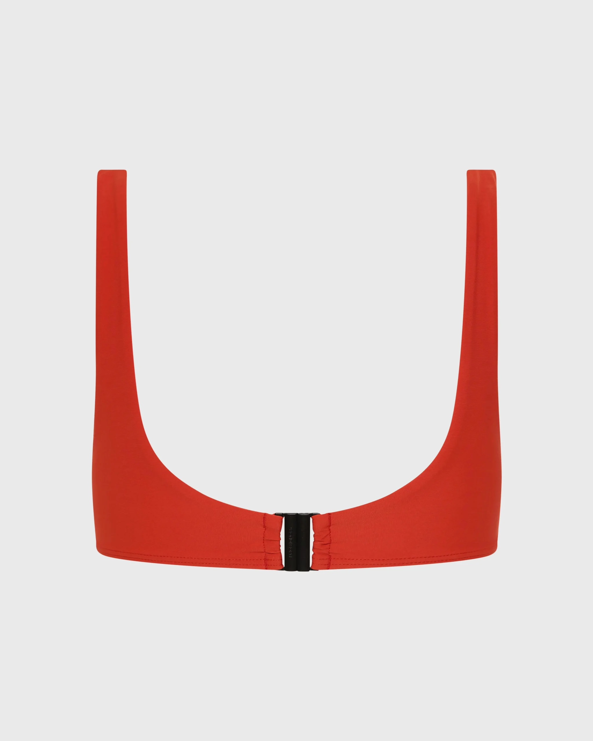The Verona bikini top in Rosso is a chic, elevated, bikini top cut from our advanced Italian Sculpteur® fabric with patented 3-D stretch. Verona features a scoop neck line with a feature V wire at the centre front that highlights and sculpts the décolletage. With wide shoulder straps and invisible under-bust support, Verona supports and defines the bust. Best suits cup sizes B-DD.